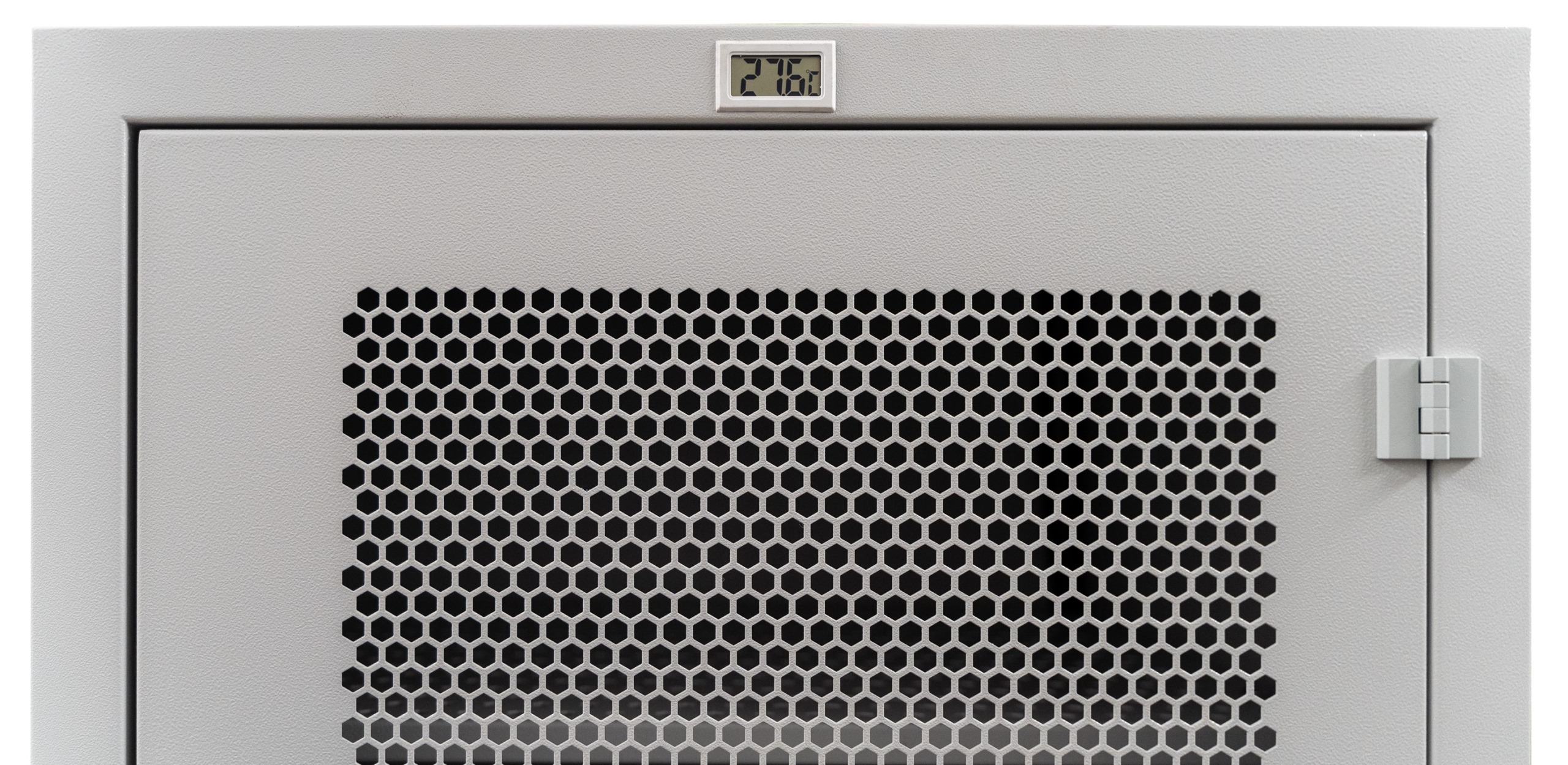 W dachu szafy dodatkowo zastosowany został termometr panelowy LCD, który pozwala na monitorowanie parametrów szafy z zewnątrz – bez potrzeby jej otwierania.